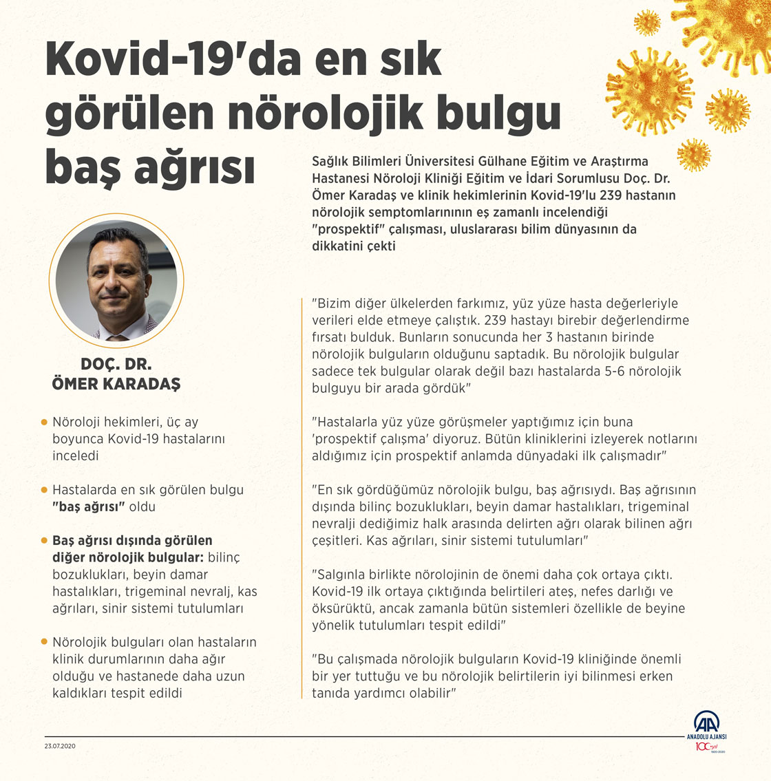 Türk bilim insanları, Kovid-19'lu hastalarda nörolojik semptomların değerlendirildiği dünyadaki ilk "prospektif" (eş zamanlı hastaları inceleme) klinik çalışmasına imza attı. ( Yasin Demirci - Anadolu Ajansı )