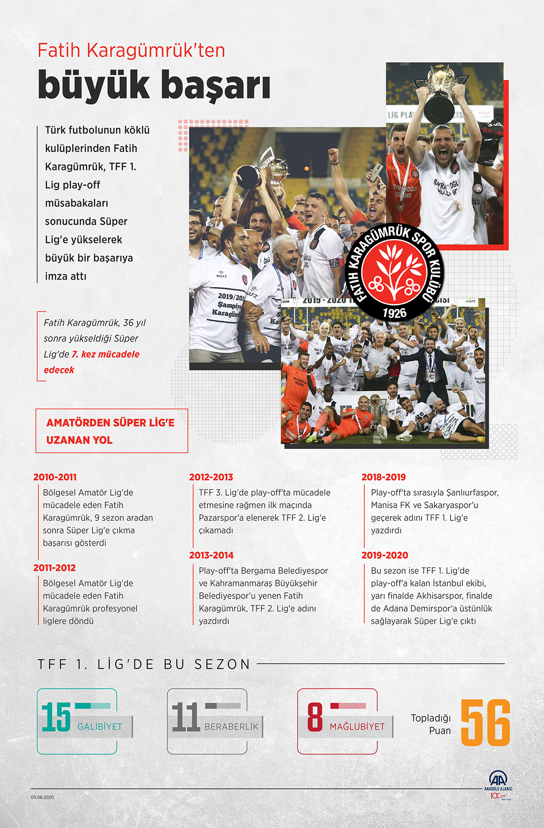 Türk futbolunun köklü kulüplerinden Fatih Karagümrük, TFF 1. Lig play-off müsabakaları sonucunda Süper Lig'e yükselerek büyük bir başarıya imza attı.