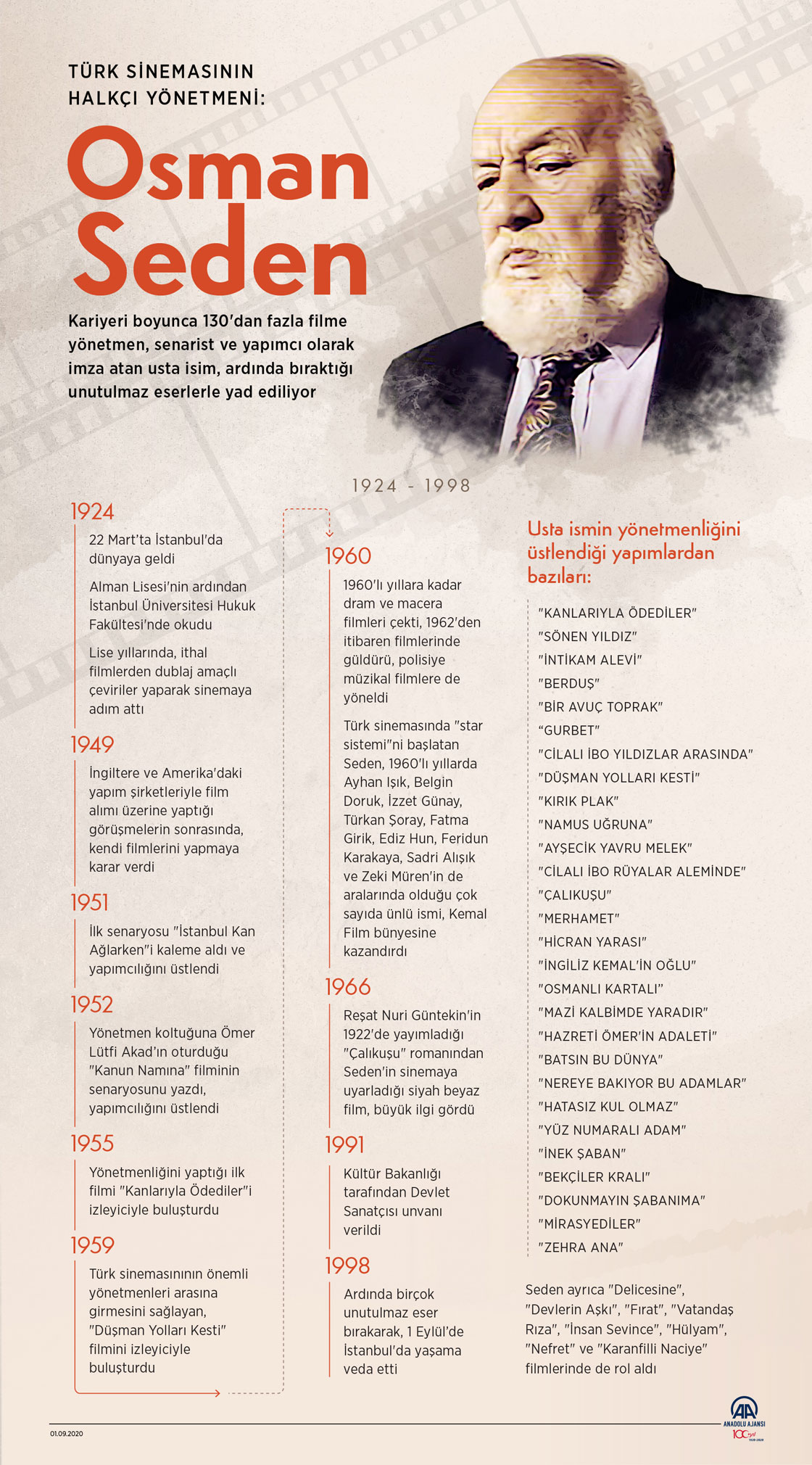 Kariyeri boyunca 130'dan fazla filme yönetmen, senarist ve yapımcı olarak imza atan usta isim, ardında bıraktığı unutulmaz eserlerle yad ediliyor. ( Elmurod Usubaliev - Anadolu Ajansı )