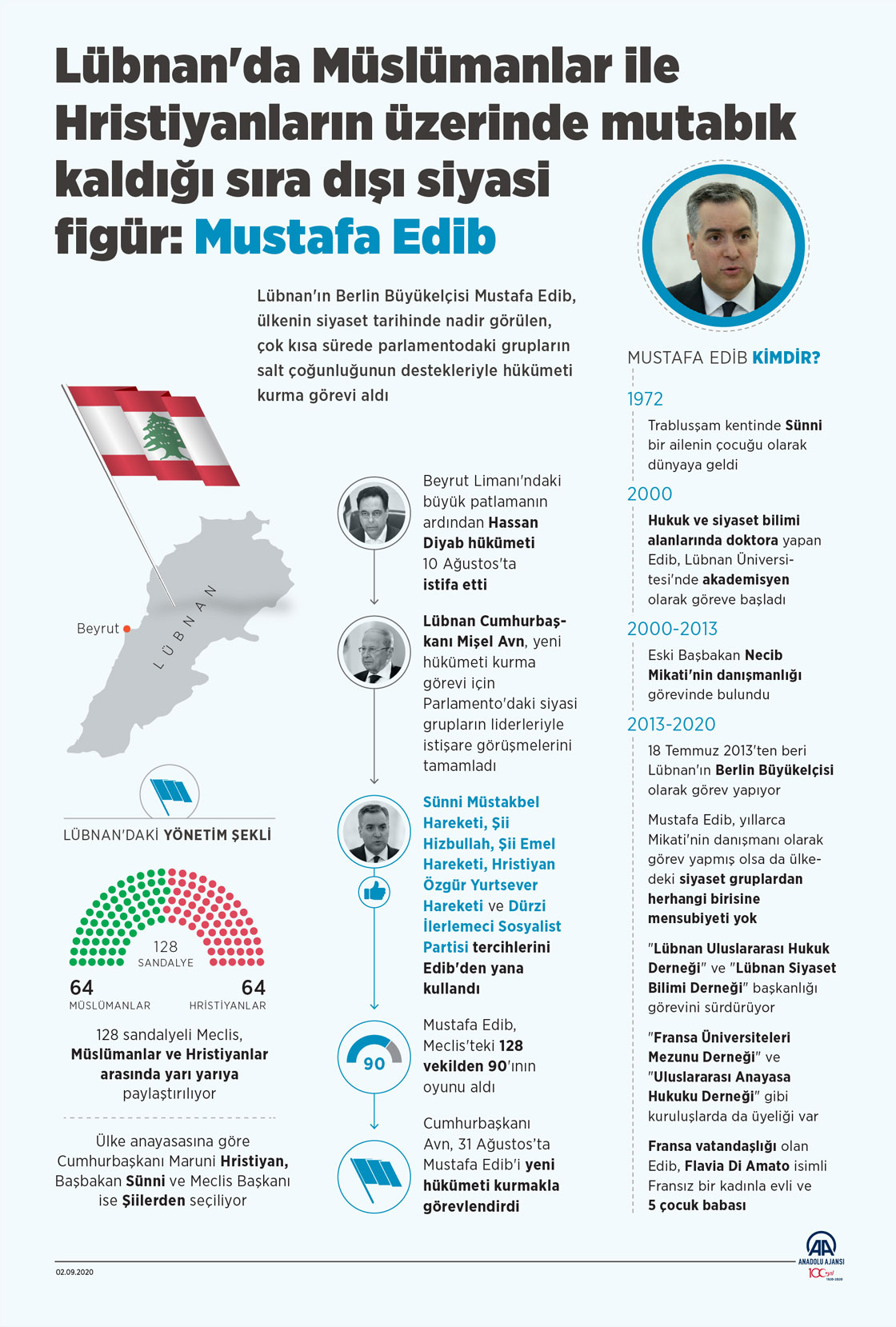 Lübnan'ın Berlin Büyükelçisi Mustafa Edib, ülkenin siyaset tarihinde nadir görülen, çok kısa sürede parlamentodaki grupların salt çoğunluğunun destekleriyle hükümeti kurma görevi aldı.