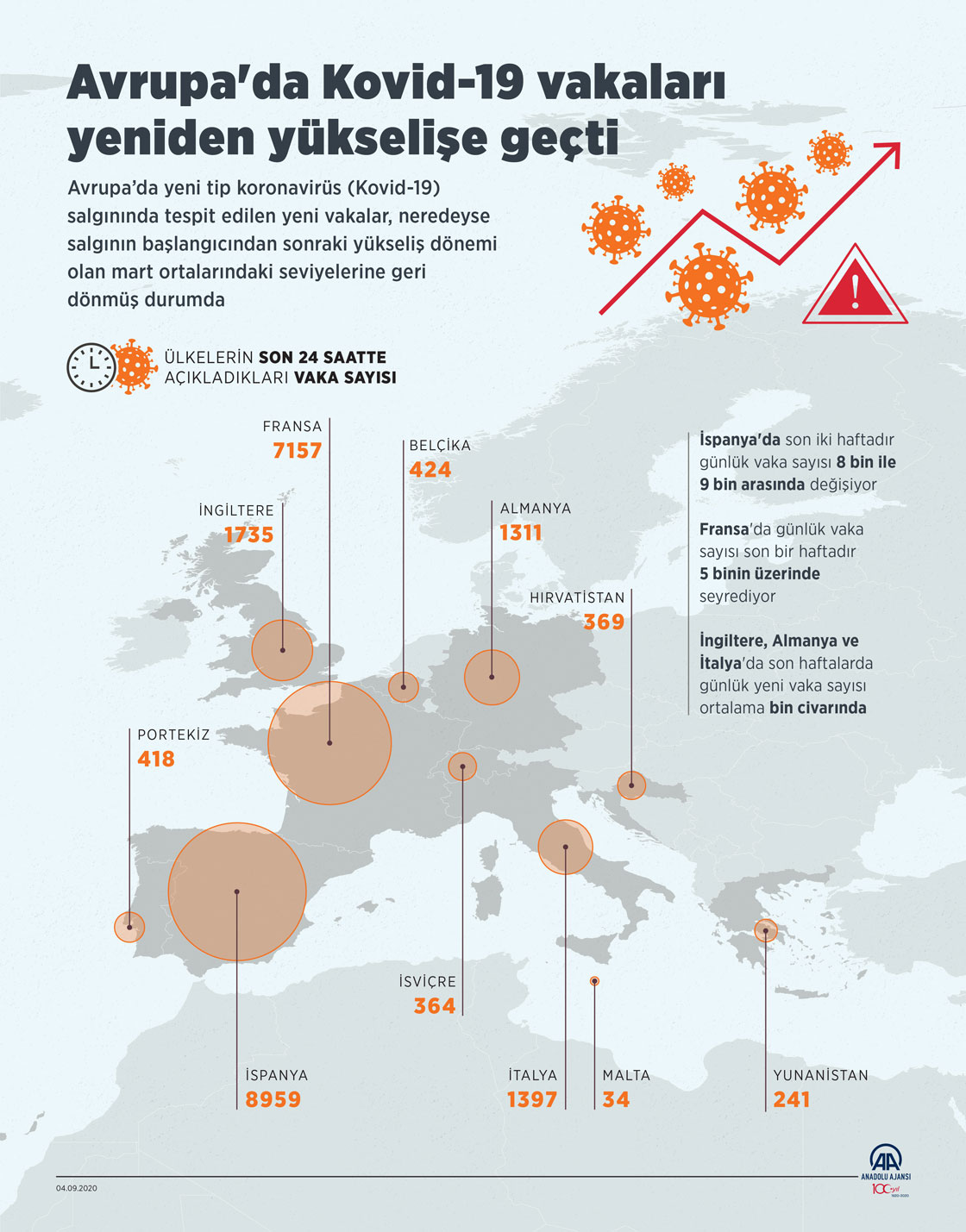 Avrupa’da yeni tip koronavirüs (Kovid-19) salgınında tespit edilen yeni vakalar, neredeyse salgının başlangıcından sonraki yükseliş dönemi olan mart ortalarındaki seviyelerine geri dönmüş durumda. ( Elmurod Usubaliev - Anadolu Ajansı )