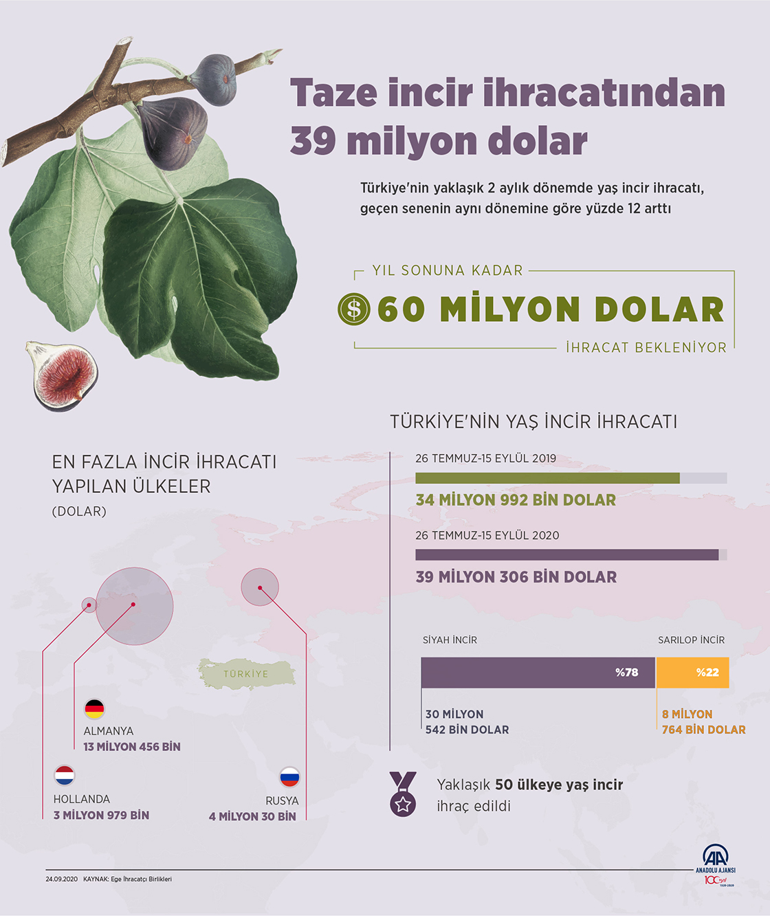 Türkiye bu sezon yaş incir ihracatından yaklaşık 2 aylık dönemde 39 milyon 306 bin dolar döviz girdisi sağladı.