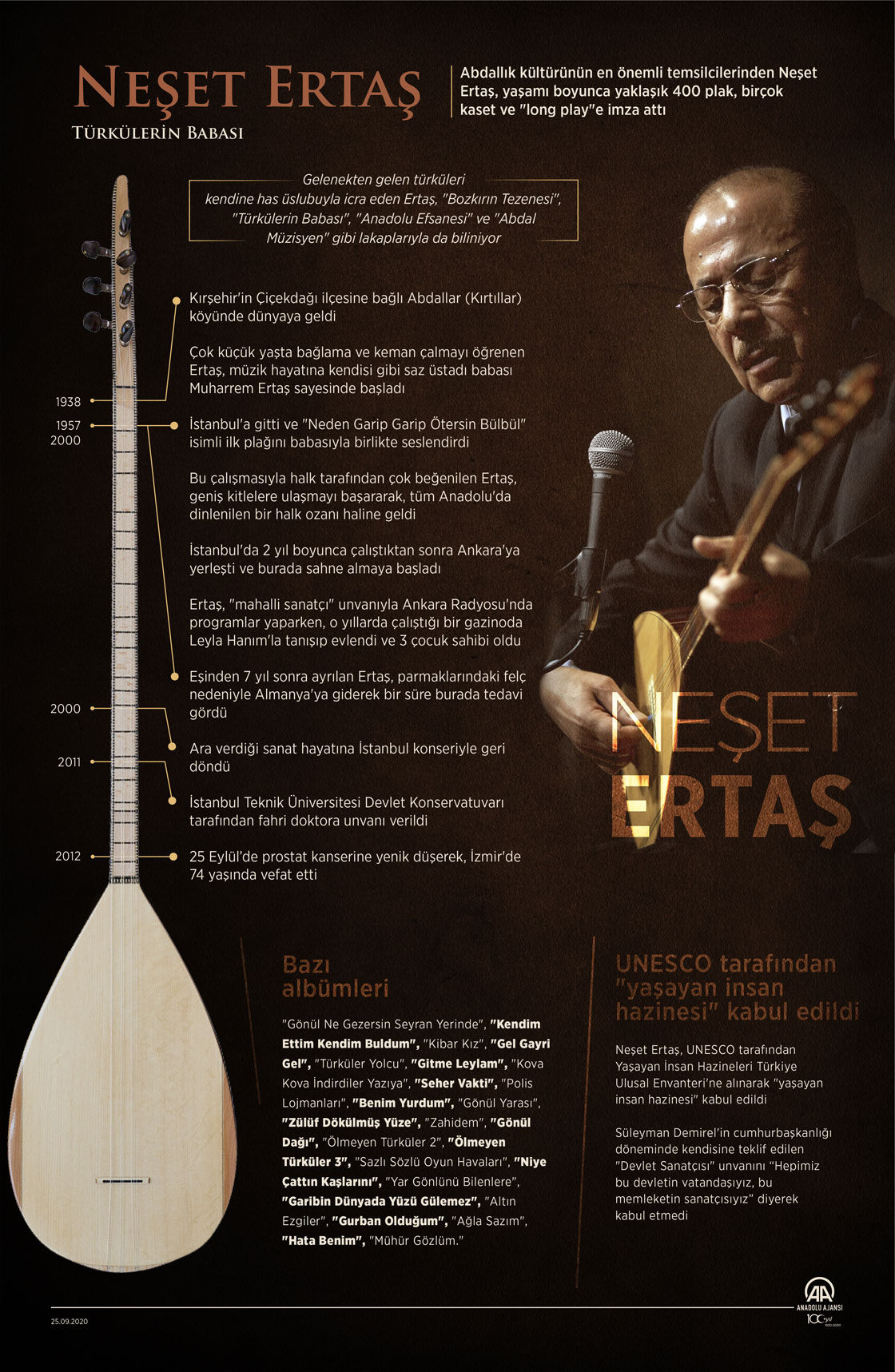 Abdallık kültürünün en önemli temsilcilerinden Neşet Ertaş, yaşamı boyunca yaklaşık 400 plak, birçok kaset ve "long play"e imza attı. ( Muhammed Ali Yiğit - Anadolu Ajansı )