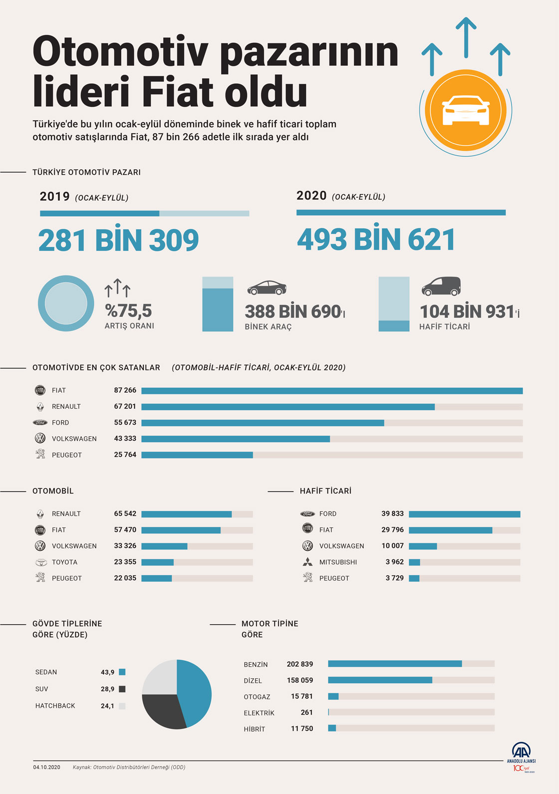 Türkiye'de bu yılın ocak-eylül döneminde binek ve hafif ticari toplam otomotiv satışlarında Fiat, 87 bin 266 adetle ilk sırada yer aldı. ( Mahmut Resul Karaca - Anadolu Ajansı )