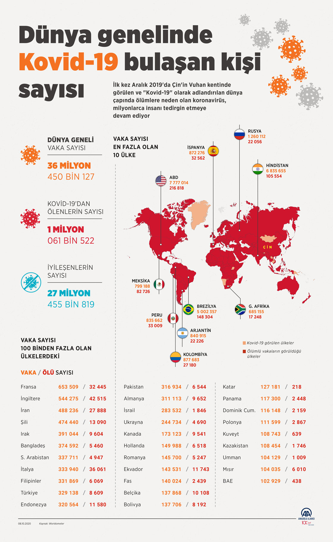 Çin'in Hubey eyaletine bağlı Vuhan kentinde ortaya çıkan yeni tip koronavirüsün (Kovid-19) dünya genelinde bulaştığı kişi sayısı 36 milyon 401 bini aştı. ( Mahmut Resul Karaca - Anadolu Ajansı )