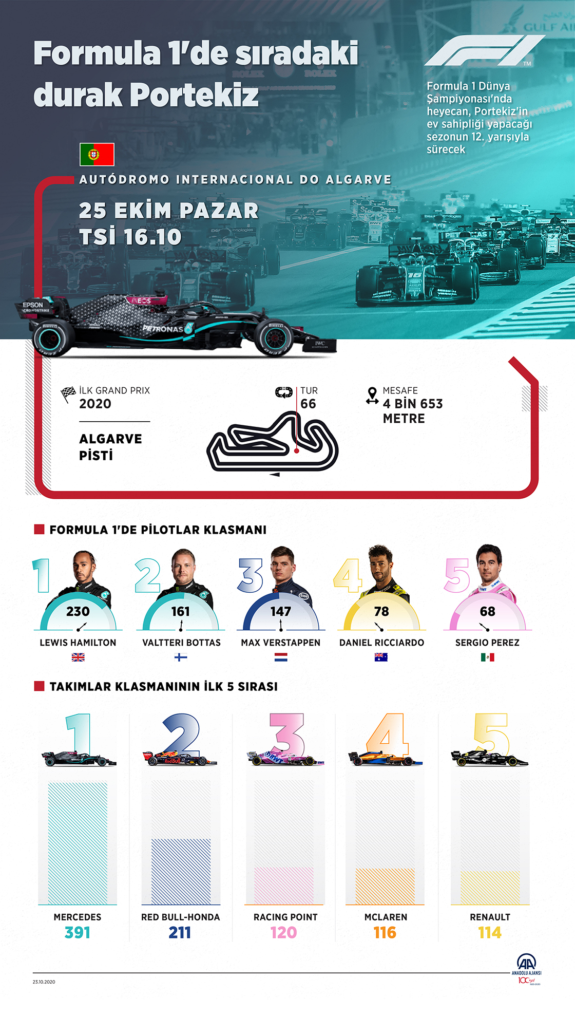 Formula 1 Dünya Şampiyonası'nda heyecan, Portekiz'in ev sahipliği yapacağı sezonun 12. yarışıyla sürecek.