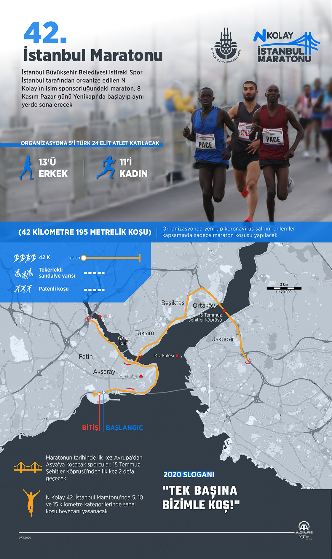 İstanbul Büyükşehir Belediyesi iştiraki Spor İstanbul tarafından organize edilen N Kolay'ın isim sponsorluğundaki maraton, 8 Kasım Pazar günü Yenikapı'da başlayıp aynı yerde sona erecek. (Muhammed Ali Yiğit - Anadolu Ajansı)