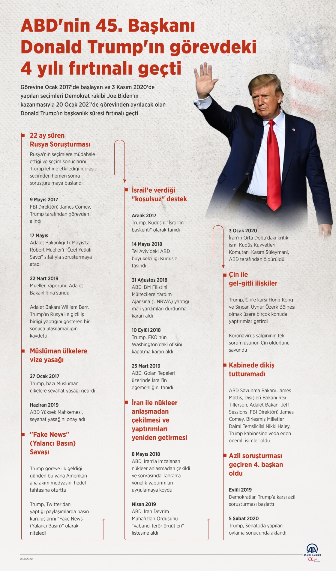 ABD'nin 45. Başkanı Donald Trump'ın görevdeki 4 yılı fırtınalı geçti
