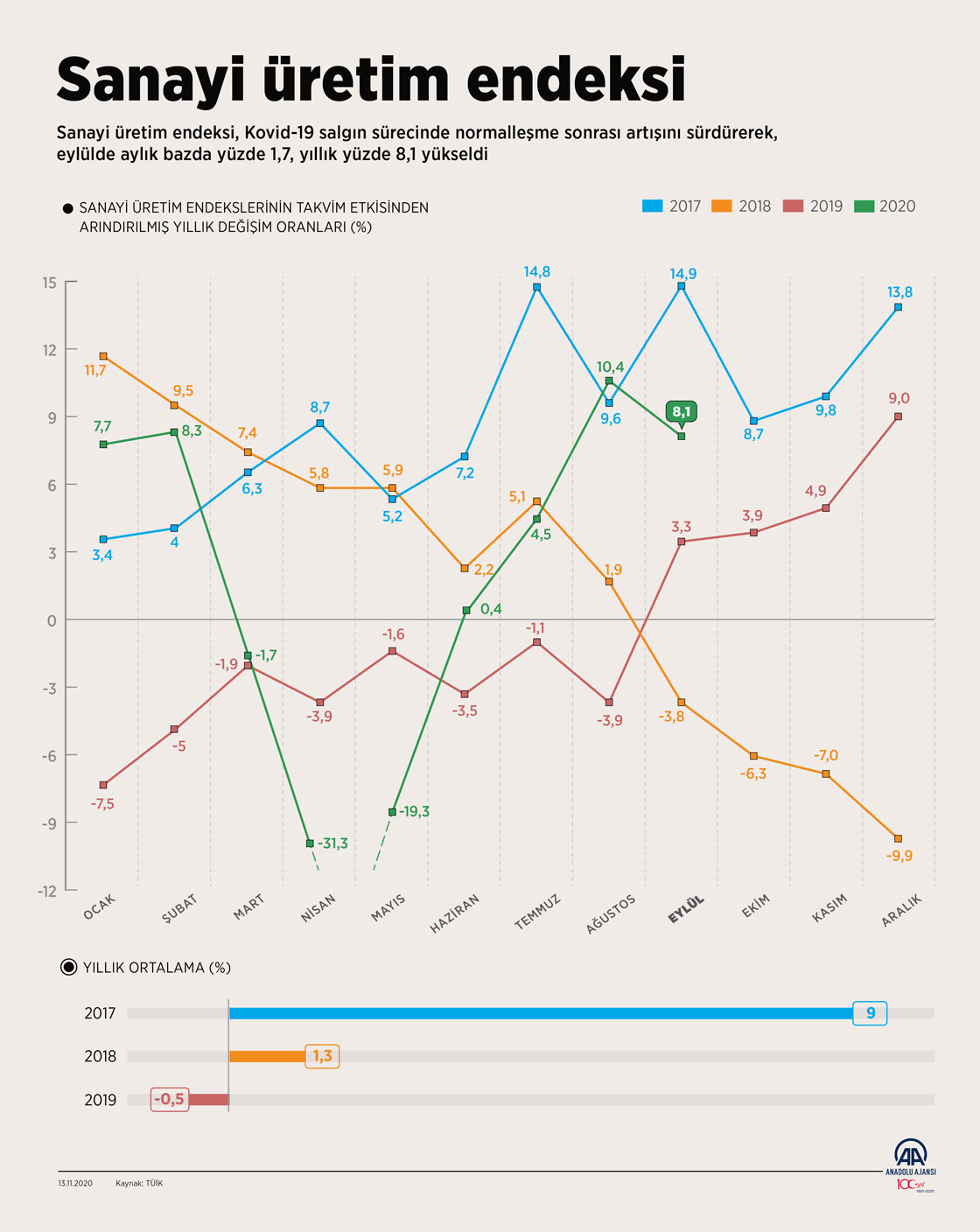 Sanayi üretim endeksi, Kovid-19 salgın sürecinde normalleşme sonrası artışını sürdürerek, eylülde aylık bazda yüzde 1,7, yıllık yüzde 8,1 yükseldi. ( Elmurod Usubaliev - Anadolu Ajansı )