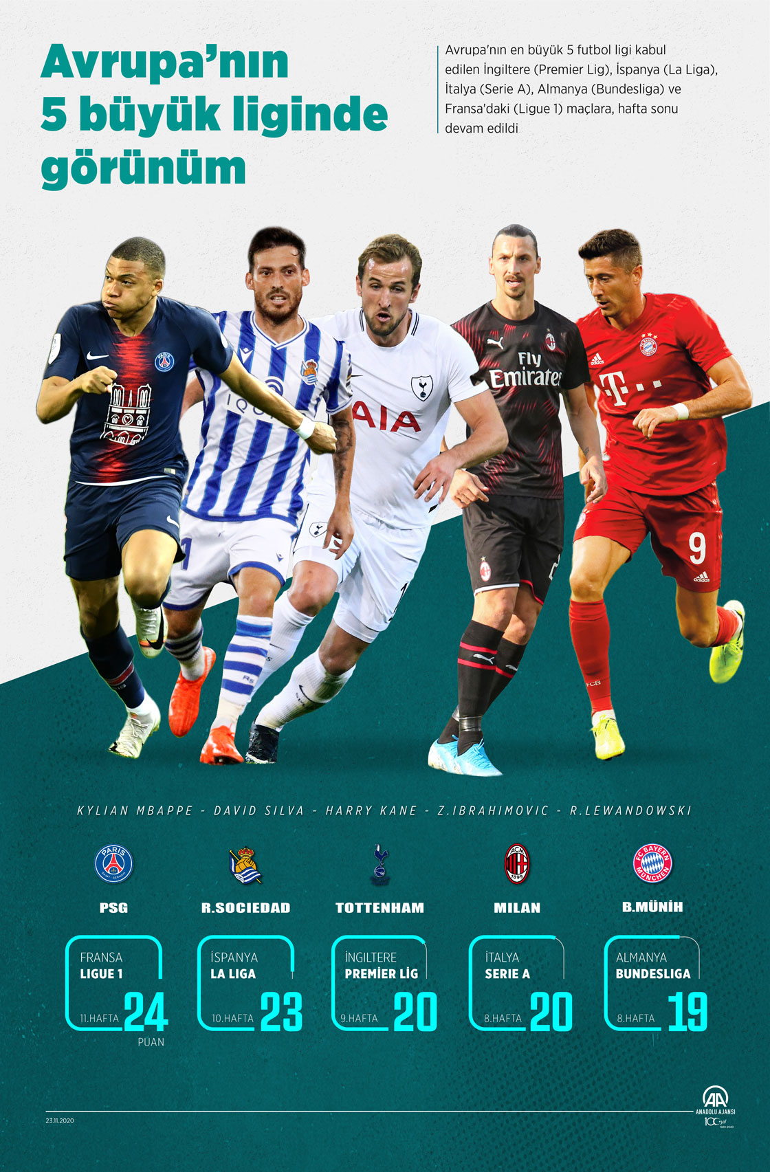 Avrupa'nın en büyük 5 futbol ligi kabul edilen İngiltere (Premier Lig), İspanya (La Liga), İtalya (Serie A), Almanya (Bundesliga) ve Fransa'daki (Ligue 1) maçlara, hafta sonu devam edildi. ( Yasin Demirci - Anadolu Ajansı )