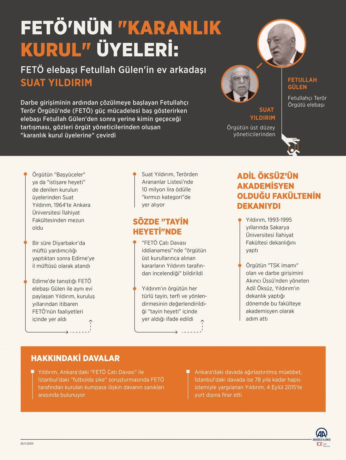 Darbe girişiminin ardından çözülmeye başlayan Fetullahçı Terör Örgütü'nde (FETÖ) güç mücadelesi baş gösterirken elebaşı Fetullah Gülen'den sonra yerine kimin geçeceği tartışması, gözleri örgüt yöneticilerinden oluşan "karanlık kurul üyelerine" çevirdi. ( Mahmut Resul Karaca - Anadolu Ajansı )26 Kasım 2020•Güncelleme: 26 Kasım 2020
