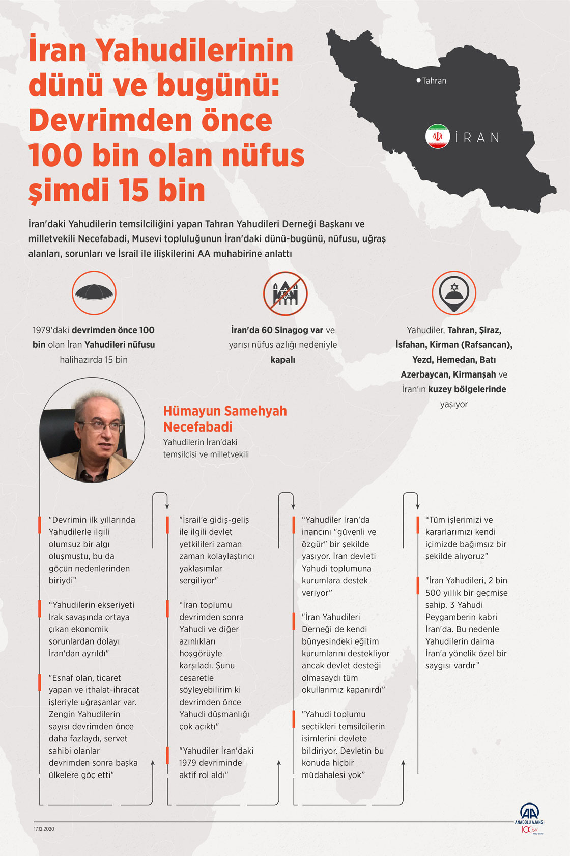 İran'daki Yahudilerin temsilciliğini yapan Tahran Yahudileri Derneği Başkanı ve milletvekili Necefabadi, Musevi topluluğunun İran'daki dünü-bugünü, nüfusu, uğraş alanları, sorunları ve İsrail ile ilişkilerini AA muhabirine anlattı. ( Mahmut Resul Karaca - Anadolu Ajansı )