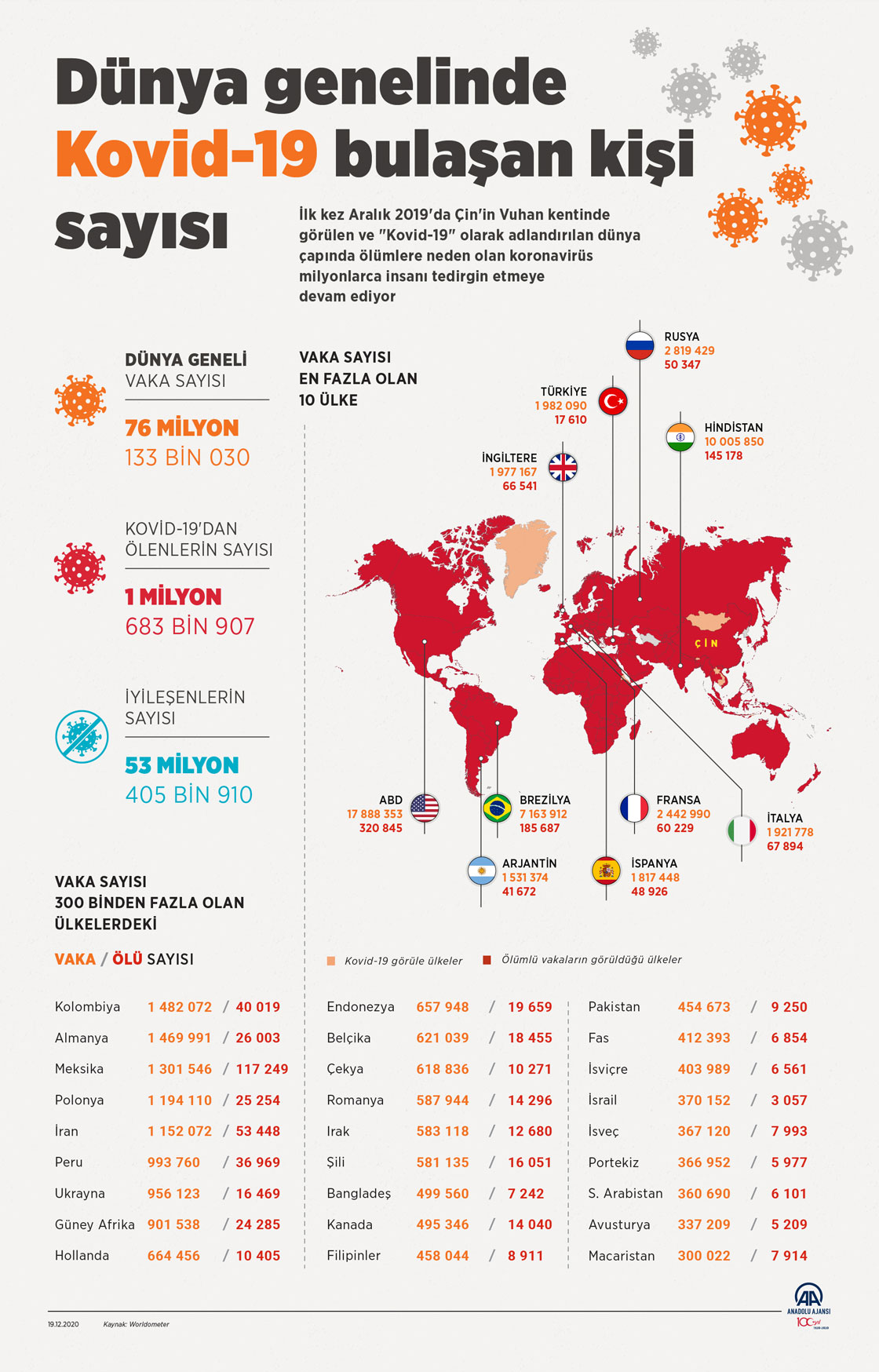 Dünya genelinde Kovid-19 tespit edilen kişi sayısı 76 milyon 102 bini geçti