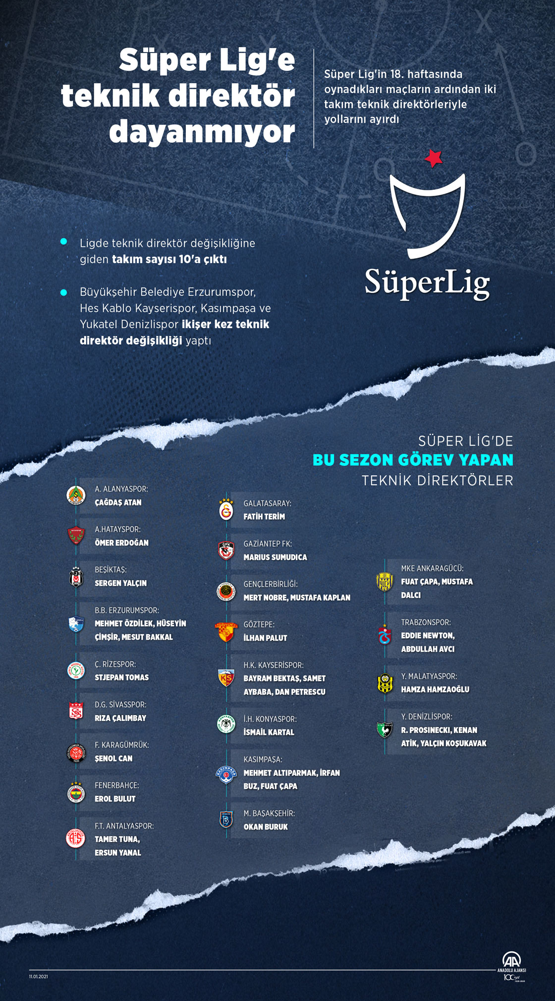 Yeni tip koronavirüs salgını nedeniyle geçen sezon küme düşme uygulamasının kaldırılmasıyla ligde 21 takım mücadele ederken, şu ana kadar bu ekiplerin 10'u sezona başladıkları teknik direktörleriyle yollarını ayırdı. ( Kemal Delikmen - Anadolu Ajansı )