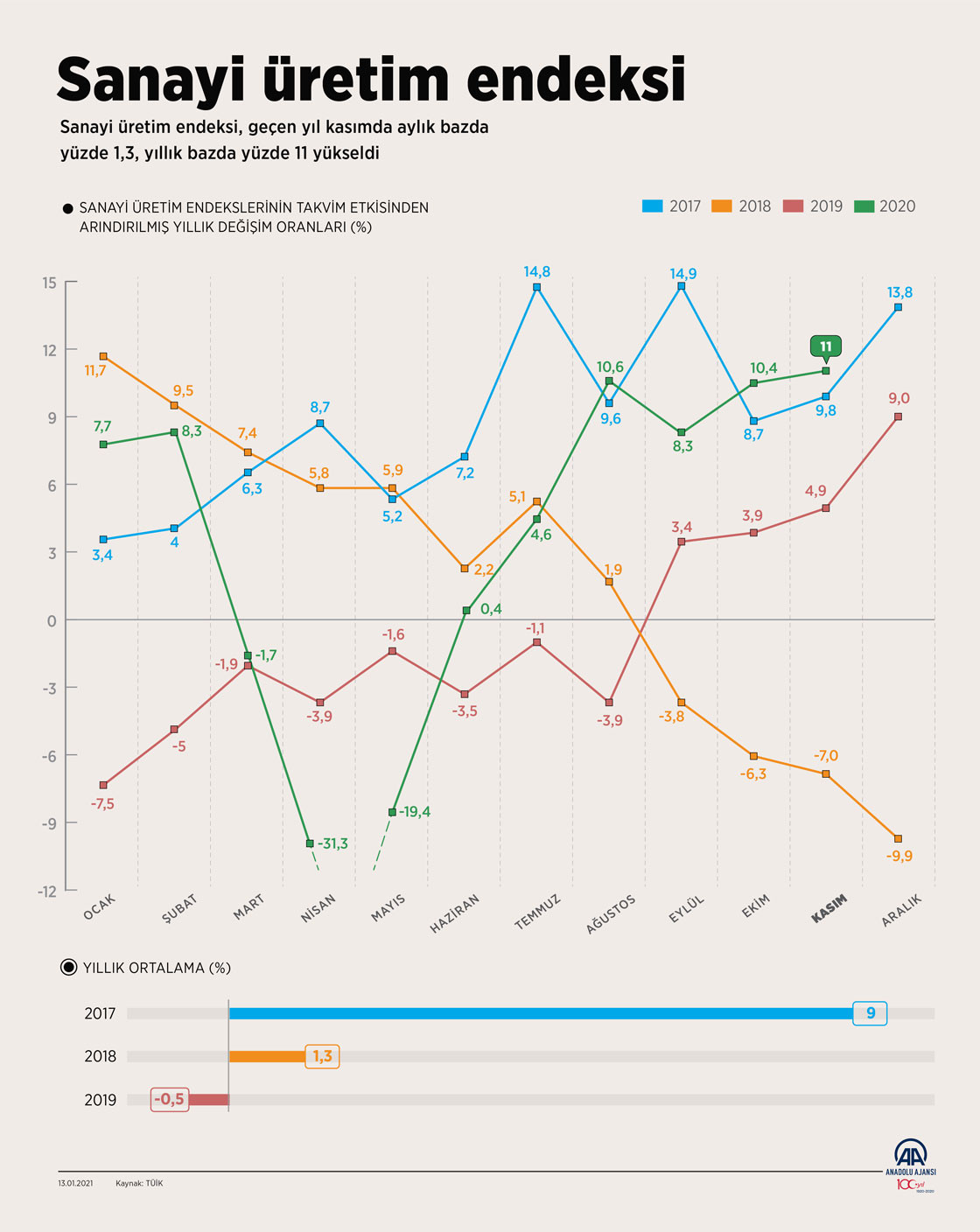 Türkiye İstatistik Kurumu (TÜİK), 2020 Kasım ayına ilişkin sanayi üretim endeksi sonuçlarını açıkladı. Sanayi üretim endeksi, Kasım 2020'de aylık bazda yüzde 1,3, yıllık bazda yüzde 11 artış gösterdi. ( Ahmet Burak Özkan - Anadolu Ajansı )