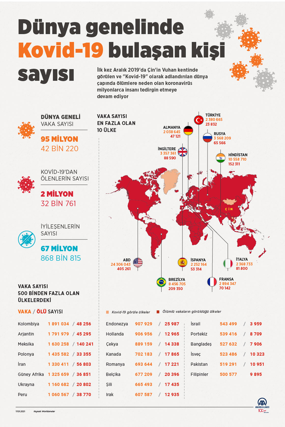Dünya genelinde Kovid-19 vaka sayısı 95 milyonu geçti