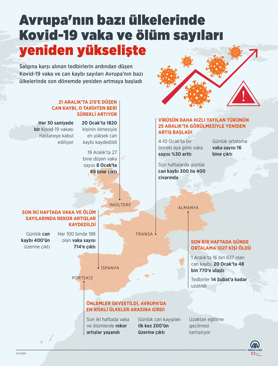 Salgına karşı alınan tedbirlerin ardından düşmeye başlayan yeni tip koronavirüs (Kovid-19) vaka ve can kaybı sayıları, Avrupa'nın bazı ülkelerinde son dönemde yeniden artmaya başladı. ( Elmurod Usubaliev - Anadolu Ajansı )