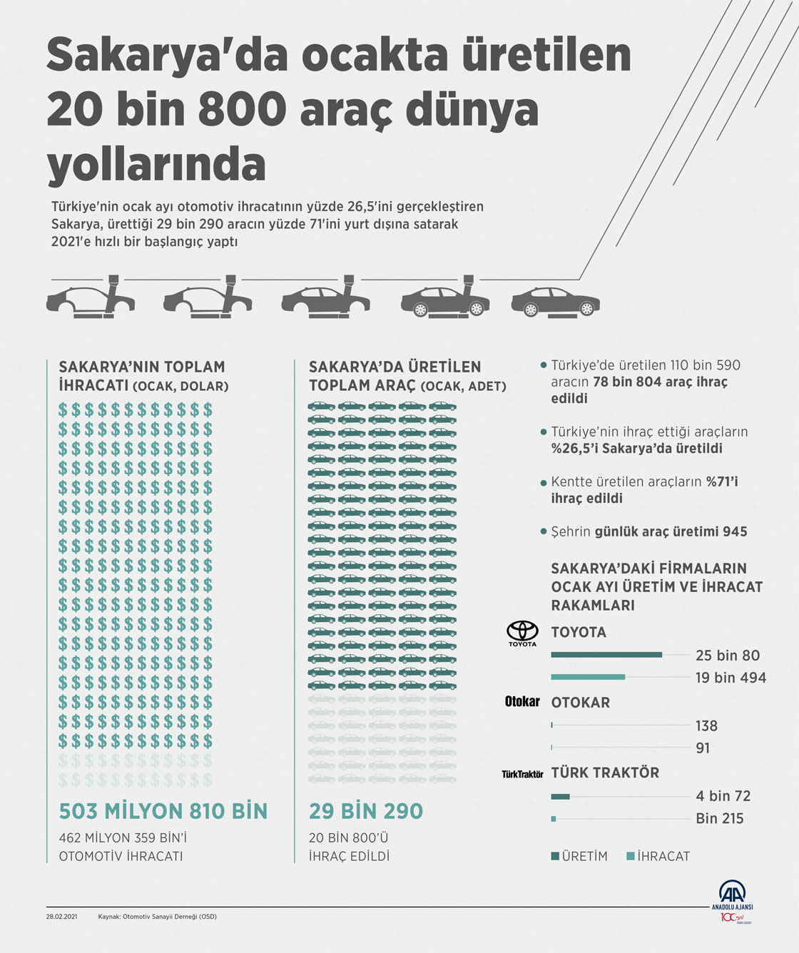 Sakarya'da ocakta üretilen 20 bin 800 araç dünya yollarında