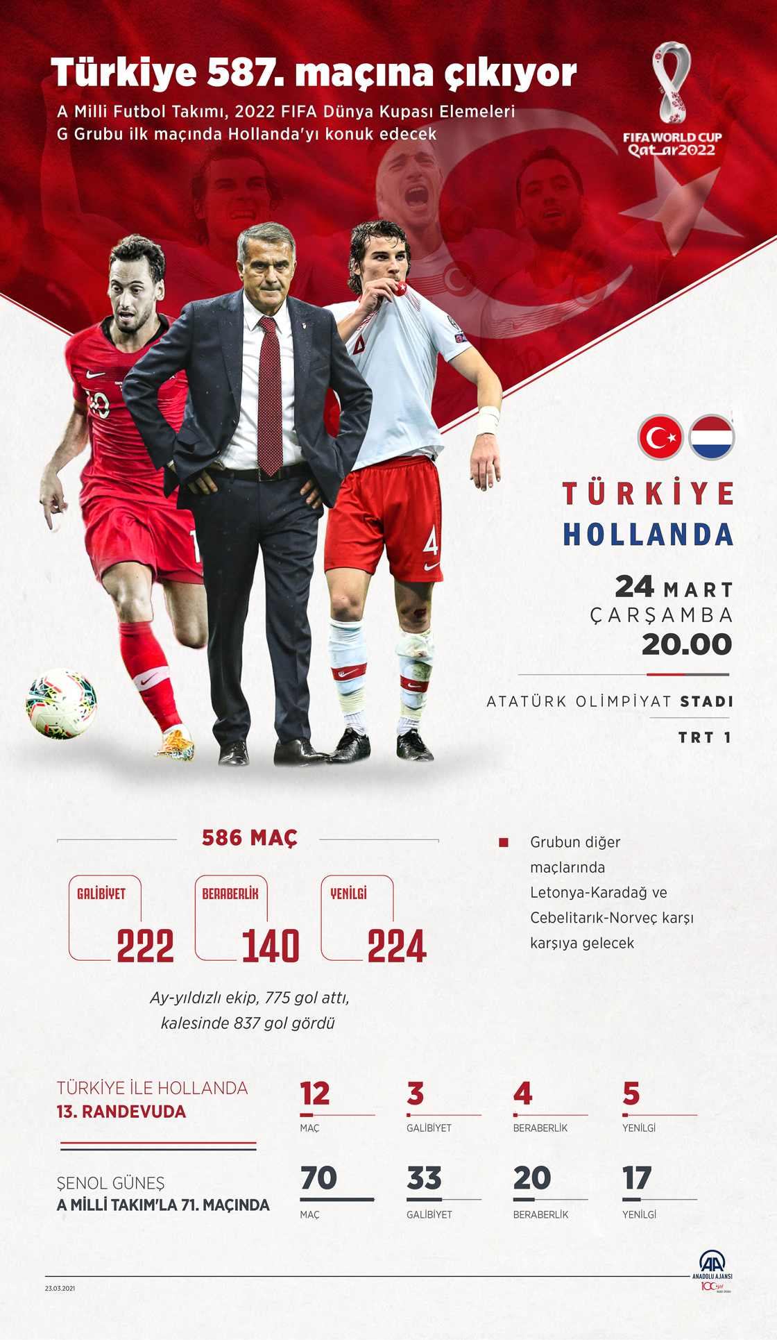 A Milli Futbol Takımı, 2022 FIFA Dünya Kupası Elemeleri G Grubu ilk maçında Hollanda'yı konuk edecek. (Grafik: Muhammed Ali Yiğit/AA)