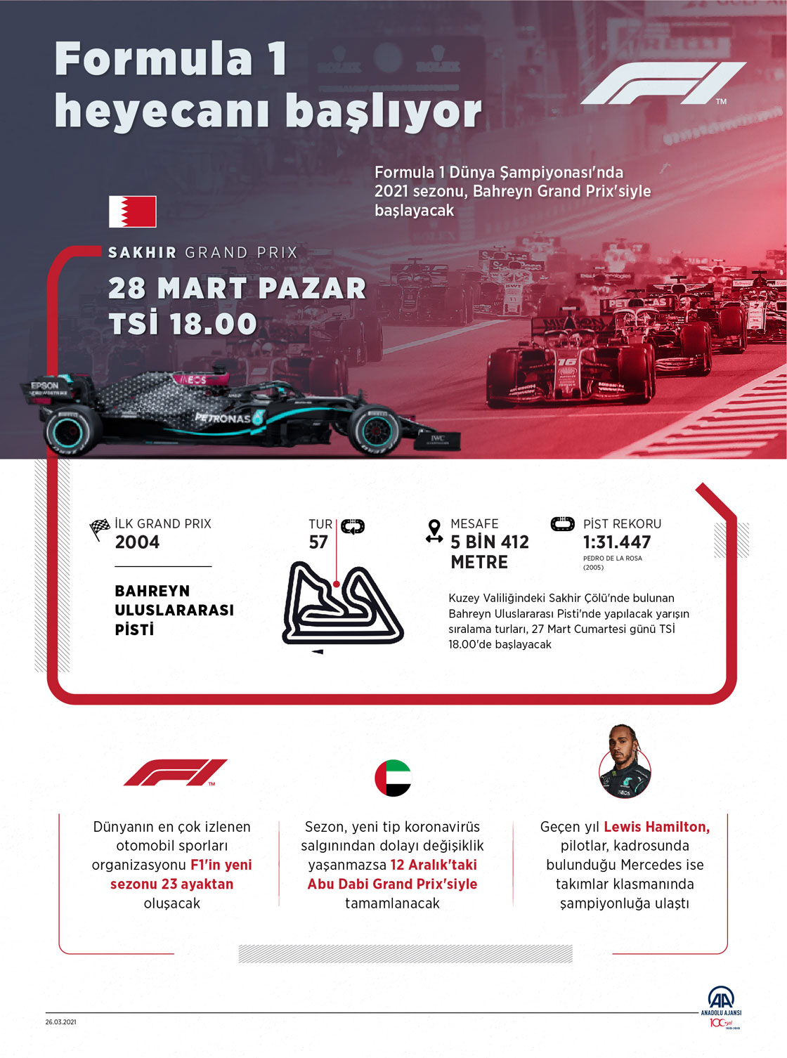 Formula 1 Dünya Şampiyonası'nda 2021 sezonu, Bahreyn Grand Prix'siyle başlayacak. ( Kemal Delikmen - Anadolu Ajansı )