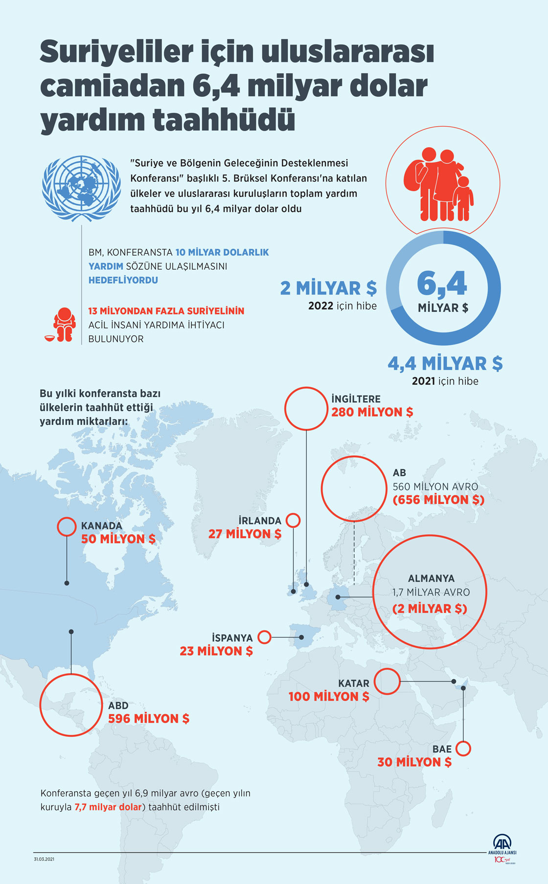 Birleşmiş Milletler (BM) ve Avrupa Birliğinin (AB) Suriyelilere destek için düzenlediği konferansta uluslararası camia 6,4 milyar dolar yardım taahhüdünde bulundu. ( Elmurod Usubaliev - Anadolu Ajansı )