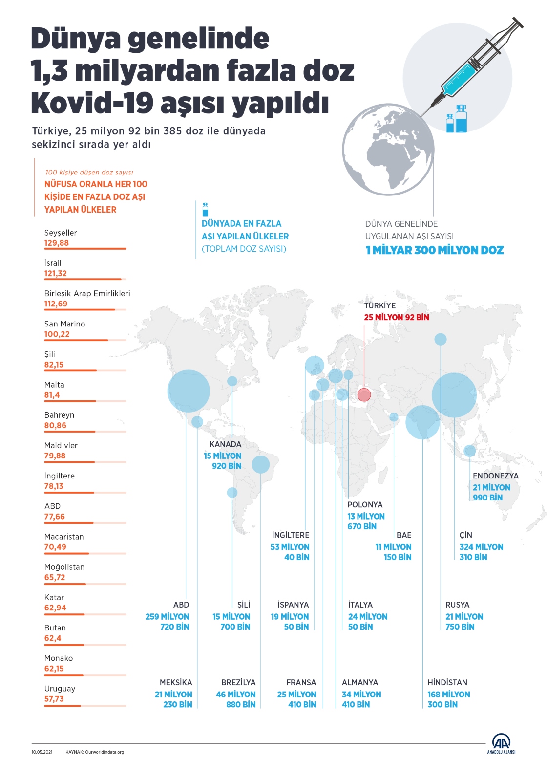 Dünya genelinde yeni tip koronavirüse (Kovid-19) karşı bugüne dek 1 milyar 300 milyondan fazla doz aşı uygulandı. (Anadolu Ajansı - Kemal Delikmen)