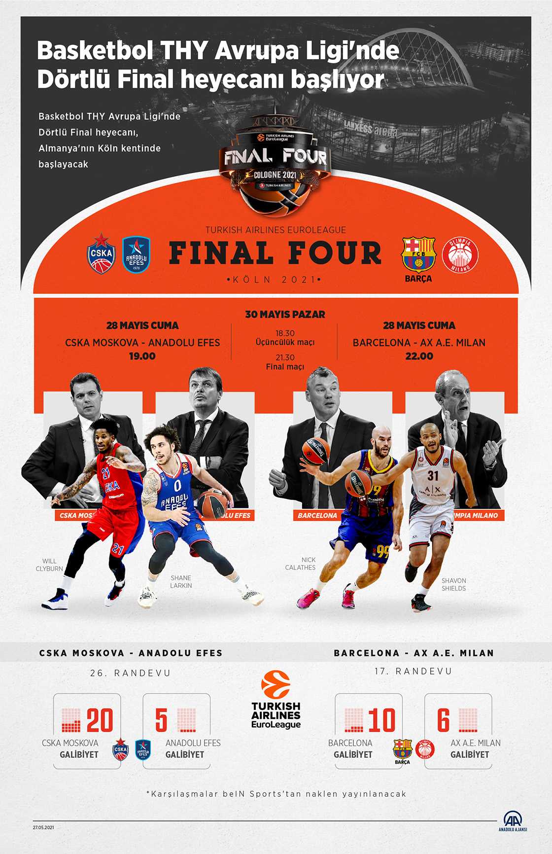 Basketbol THY Avrupa Ligi'nde Dörtlü Final heyecanı, yarın Almanya'nın Köln kentinde başlayacak.