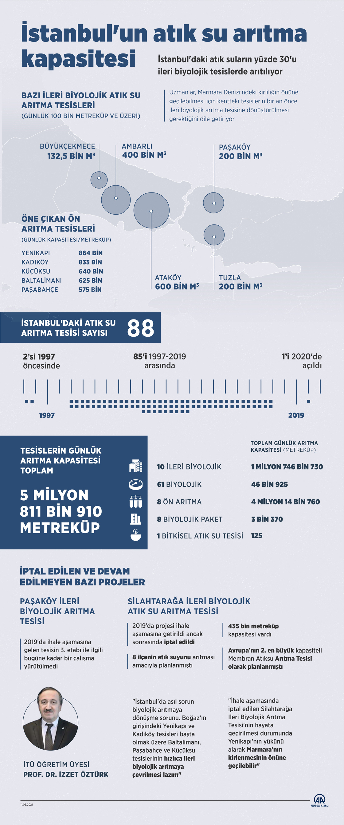 İstanbul'daki atık suların yüzde 30'u ileri biyolojik tesislerde arıtılıyor. Uzmanlar, Marmara Denizi'ndeki kirliliğin önüne geçilebilmesi için kentteki tesislerin bir an önce ileri biyolojik arıtma tesisine dönüştürülmesi gerektiğini dile getiriyor. ( Mahmut Resul Karaca - Anadolu Ajansı )11 Haziran 2021•Güncelleme: 11 Haziran 2021