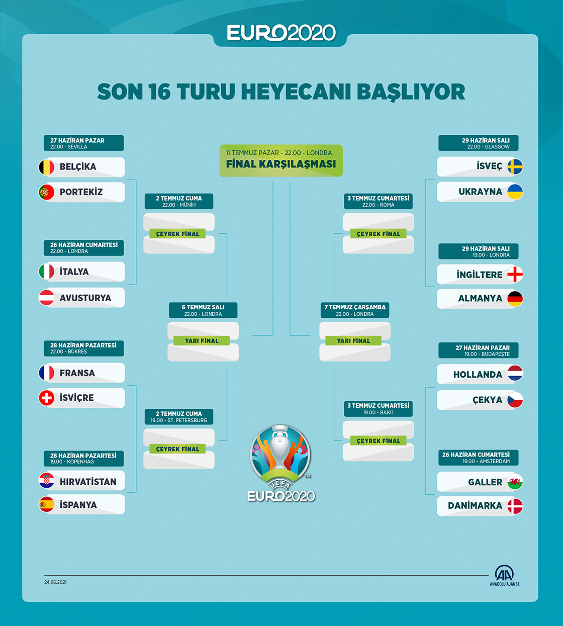 16. Avrupa Futbol Şampiyonası'ndaki (EURO 2020) eleme turu karşılaşmaları, 26 Haziran Cumartesi günü başlayacak. (Grafik: Kemal Delikmen/AA)