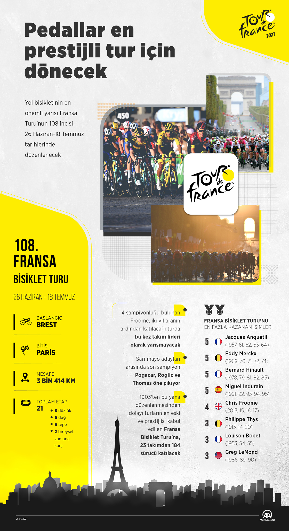 Pedallar en prestijli tur için dönecek