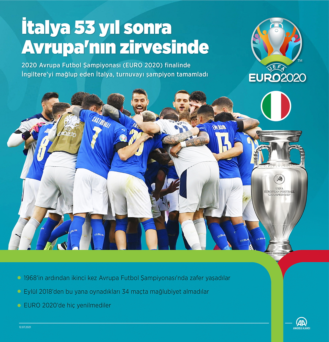 İtalya 53 yıl sonra Avrupa'nın zirvesinde