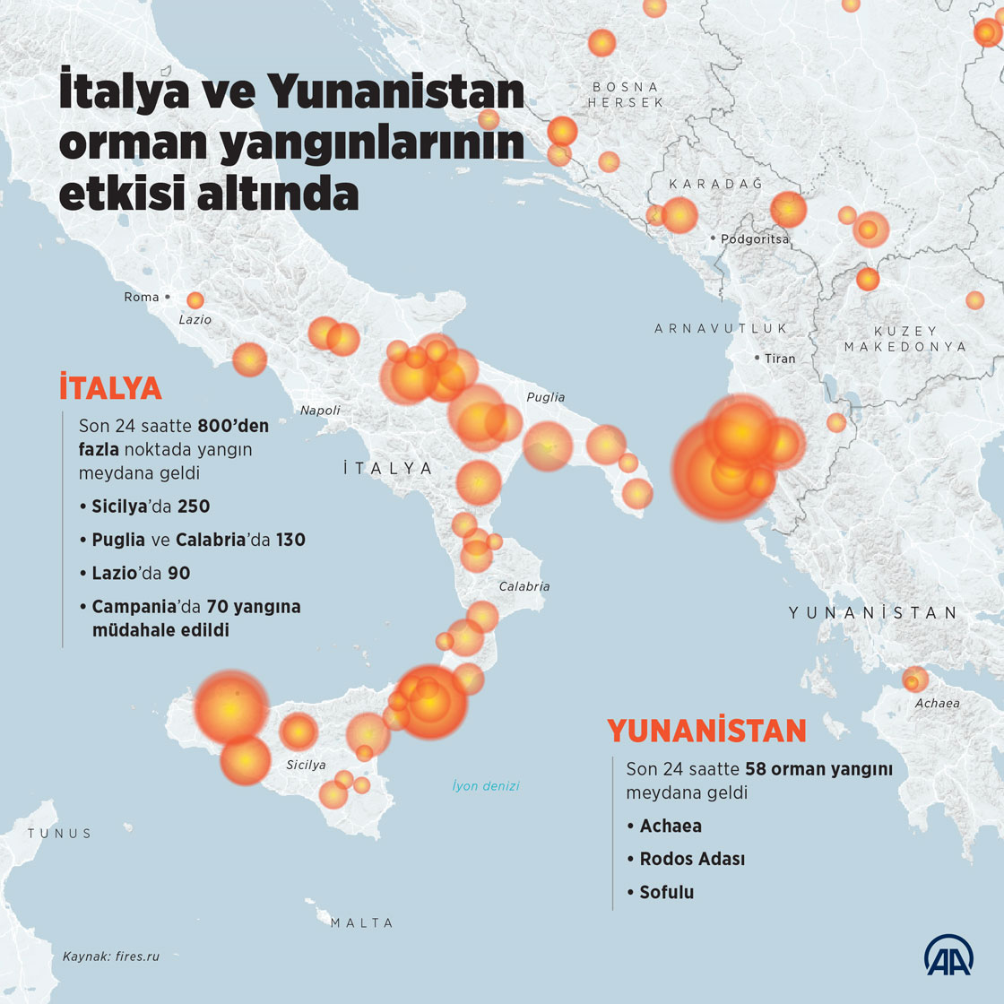 İtalya ve Yunanistan orman yangınlarının etkisi altında