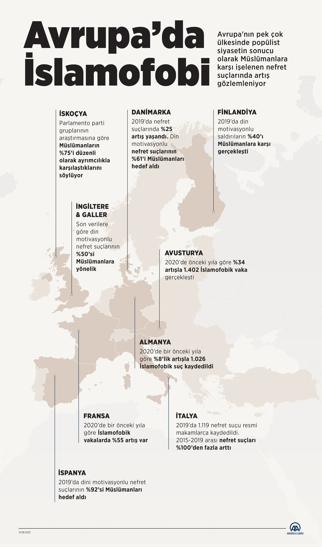 Siyasetten medyaya pek çok kurum ve kuruluş, İslamofobi'yi gündemine almamakta aksine popülist bir tavır takınarak, kitleleri İslam düşmanlığı etrafında toplamayı hedeflemekte. (Grafik: Mahmut Resul Karaca/AA)