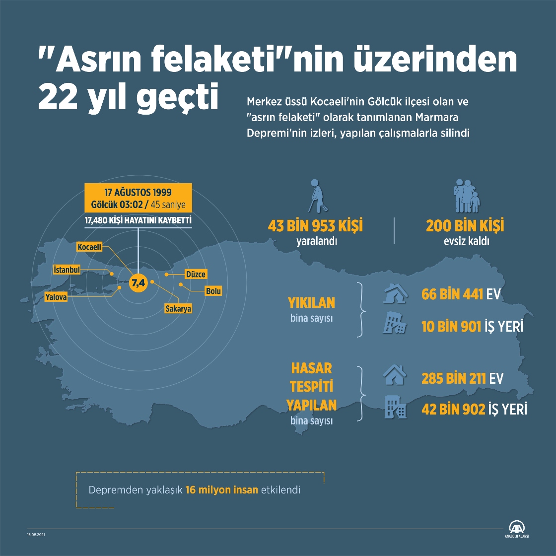 Merkez üssü Kocaeli'nin Gölcük ilçesi olan ve "asrın felaketi" olarak tanımlanan Marmara Depremi'nin izleri, yapılan çalışmalarla silindi.