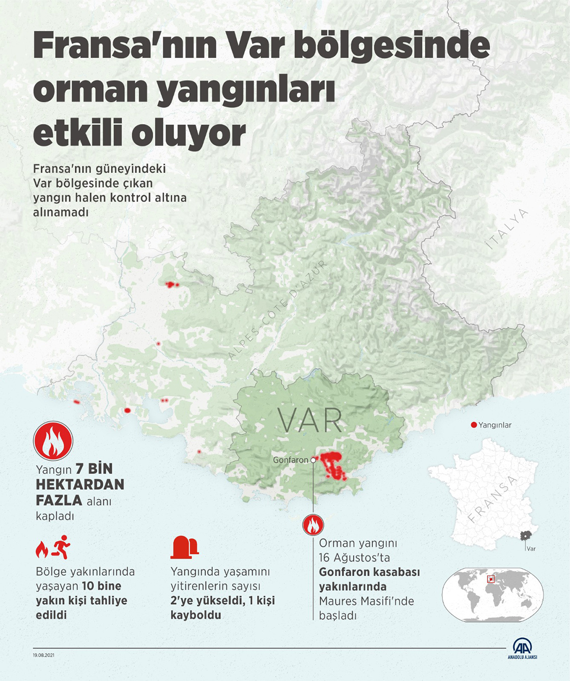 Fransa'nın Var bölgesinde orman yangınları etkili oluyor