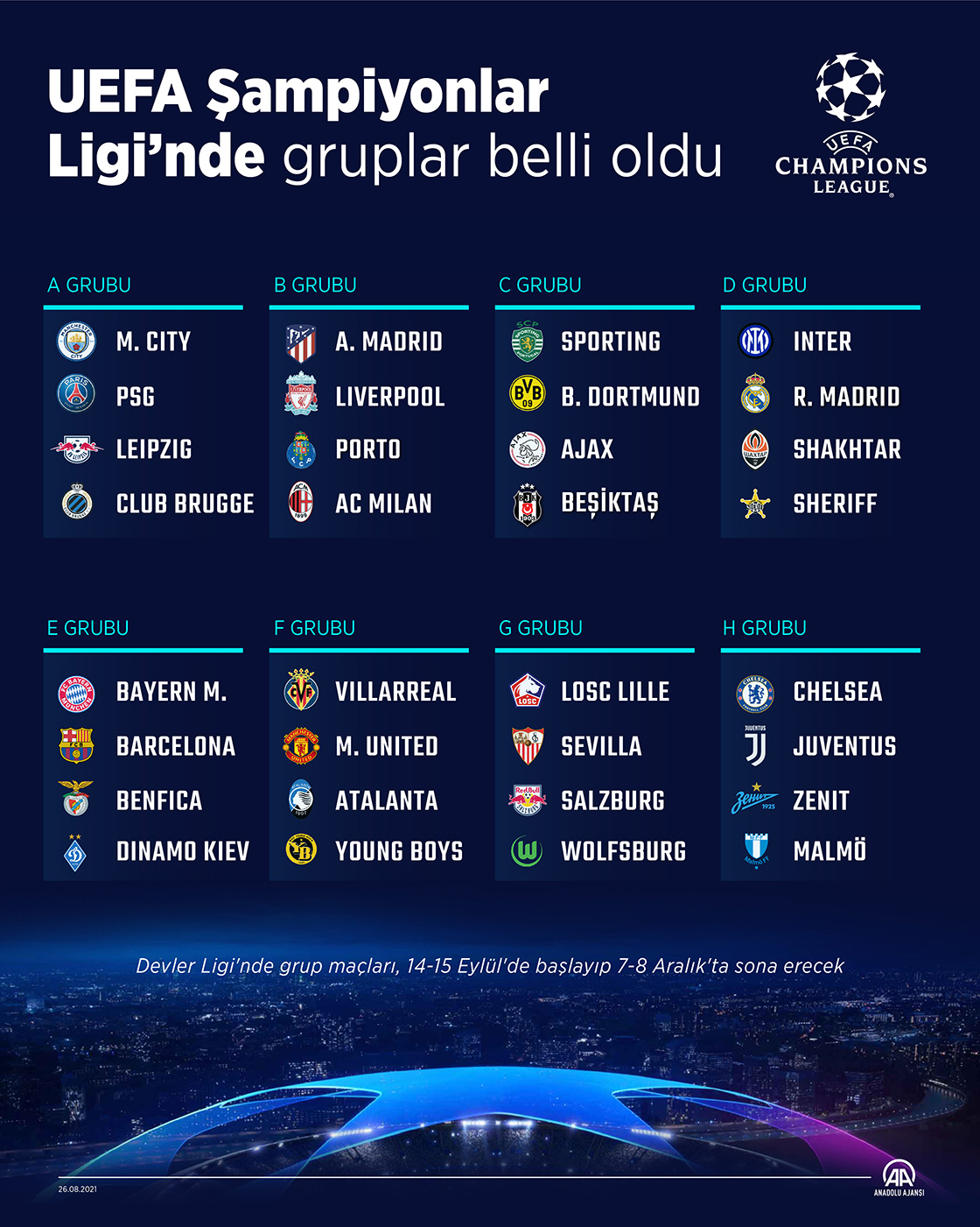 UEFA Şampiyonlar Ligi'nde 2021-2022 sezonu grup kuraları çekildi. Temsilcimiz Beşiktaş C grubunda mücadele edecek. ( Mahmut Resul Karaca - Anadolu Ajansı )