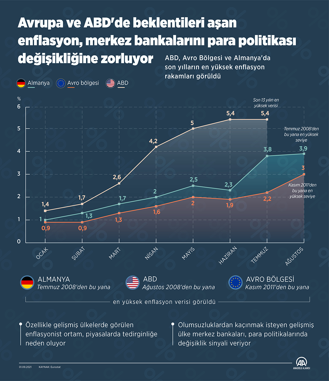 ABD ve Avrupa'da beklentilerin üzerinde gelen enflasyon verisi piyasalarda tedirginliğe neden olurken bu durum gelişmiş ülke merkez bankalarını politika değişikliğine zorluyor. (Grafik: Muhammed Ali Yiğit/AA)