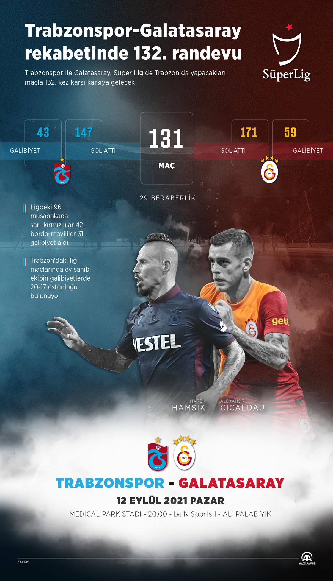 Trabzonspor ile Galatasaray, Süper Lig'de yarın Trabzon'da yapacakları maçla 132. kez karşı karşıya gelecek ( Kemal Delikmen - Anadolu Ajansı )