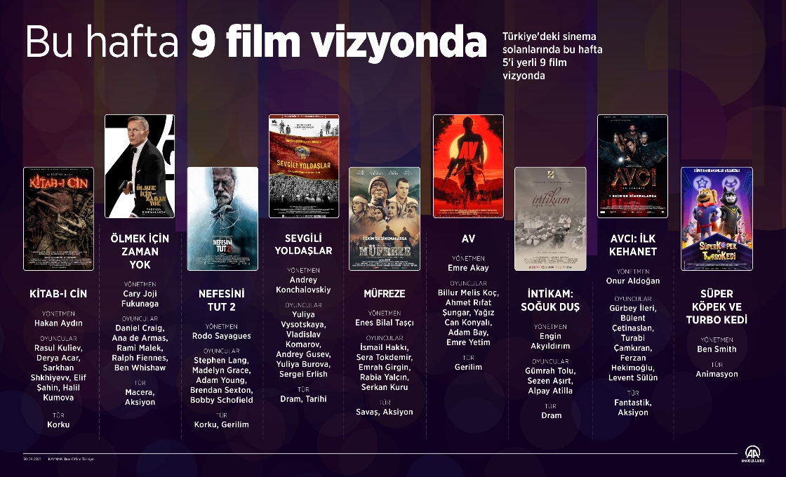 Türkiye'deki sinema salonlarında bu hafta 5'i yerli 9 film vizyona girecek.