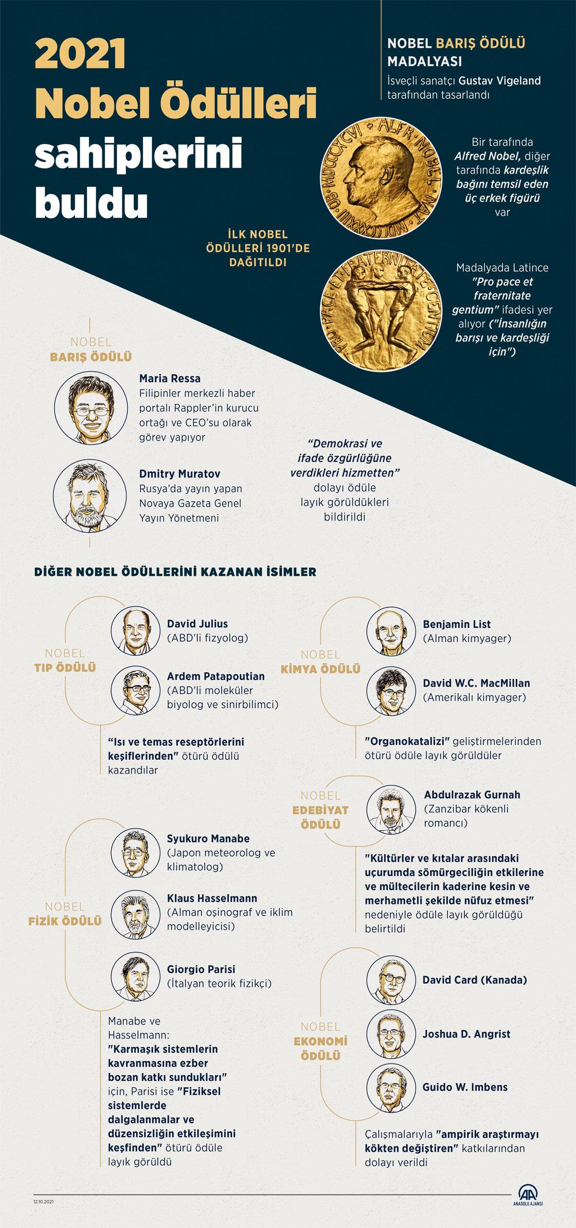 2021 Nobel Ödüllerini kazananların tamamı belli olurken, yeni tip koronavirüs (Kovid-19) salgını nedeniyle ödüller bu yıl da sahiplerine törenle verilemeyecek. ( Yasin Demirci - Anadolu Ajansı )