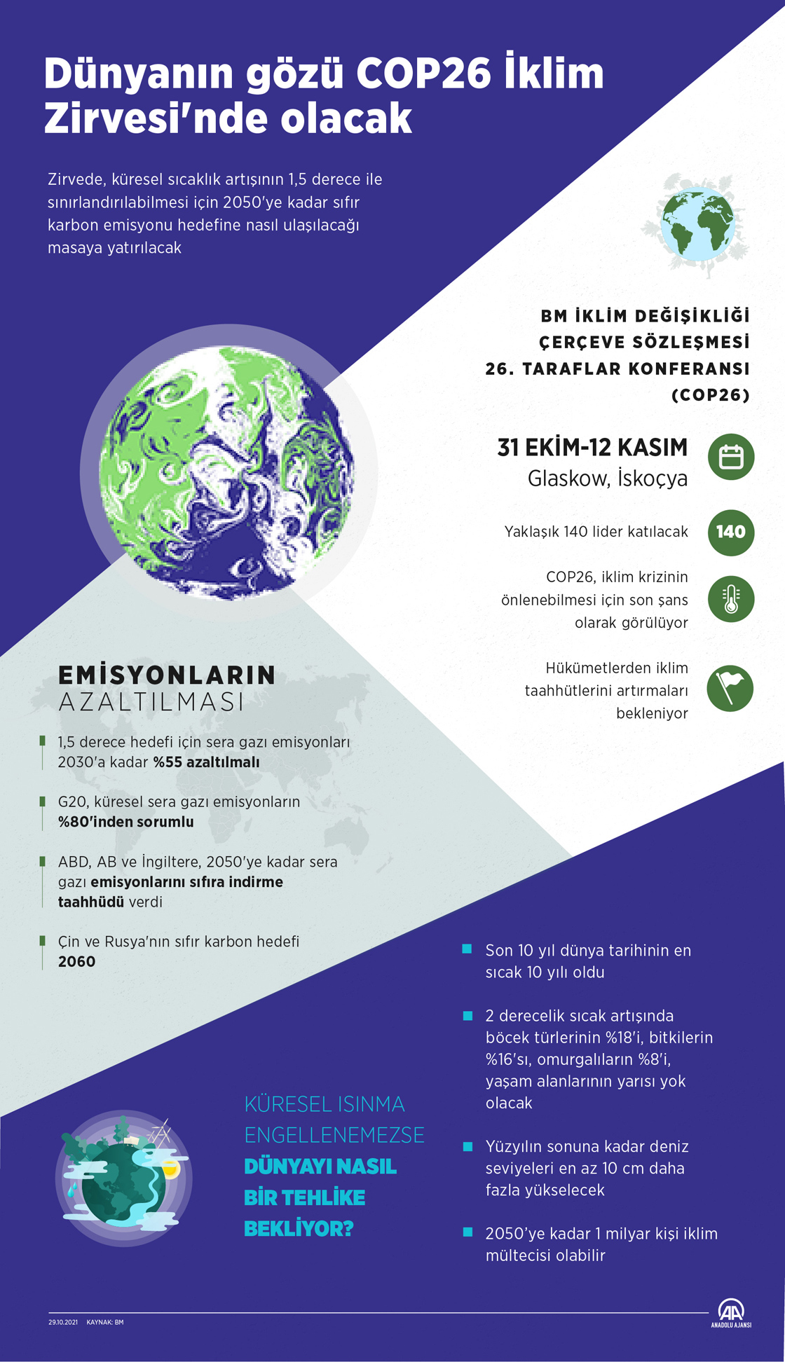 Dünyanın gözü 31 Ekim'de Glasgow'da başlayacak COP26 İklim Zirvesi'nde olacak
