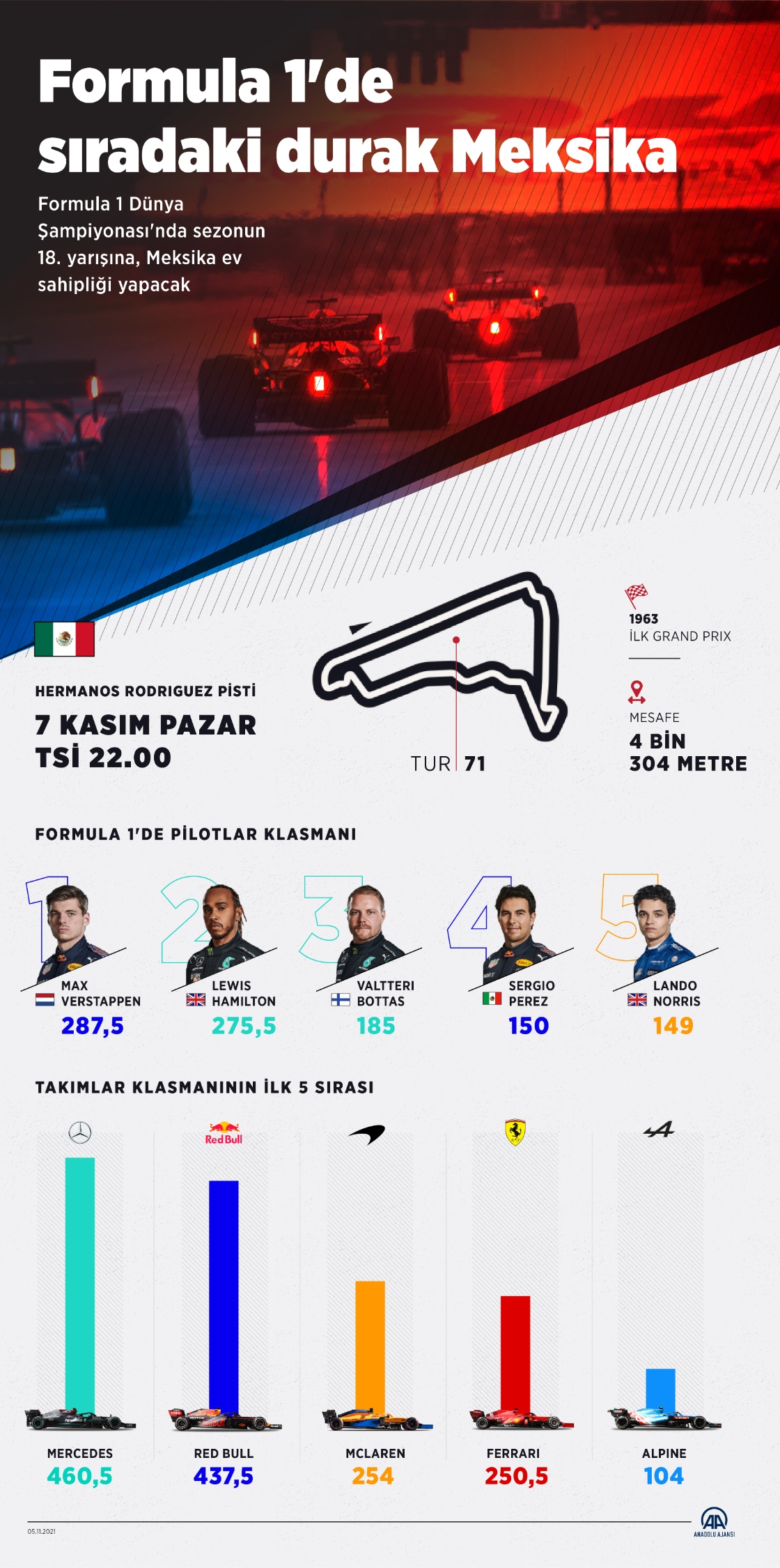 Formula 1 Dünya Şampiyonası'nda sezonun 18. yarışına, Meksika ev sahipliği yapacak.
