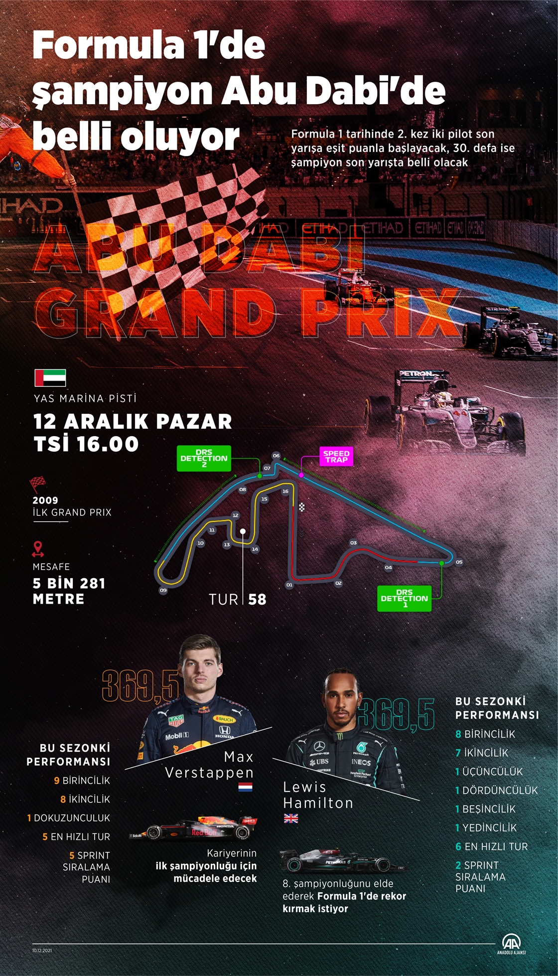 Formula 1 Dünya Şampiyonası'nda sezonun 22. ve son yarışı, Birleşik Arap Emirlikleri'nde yapılacak. (Grafik: Yasin Demirci / AA)