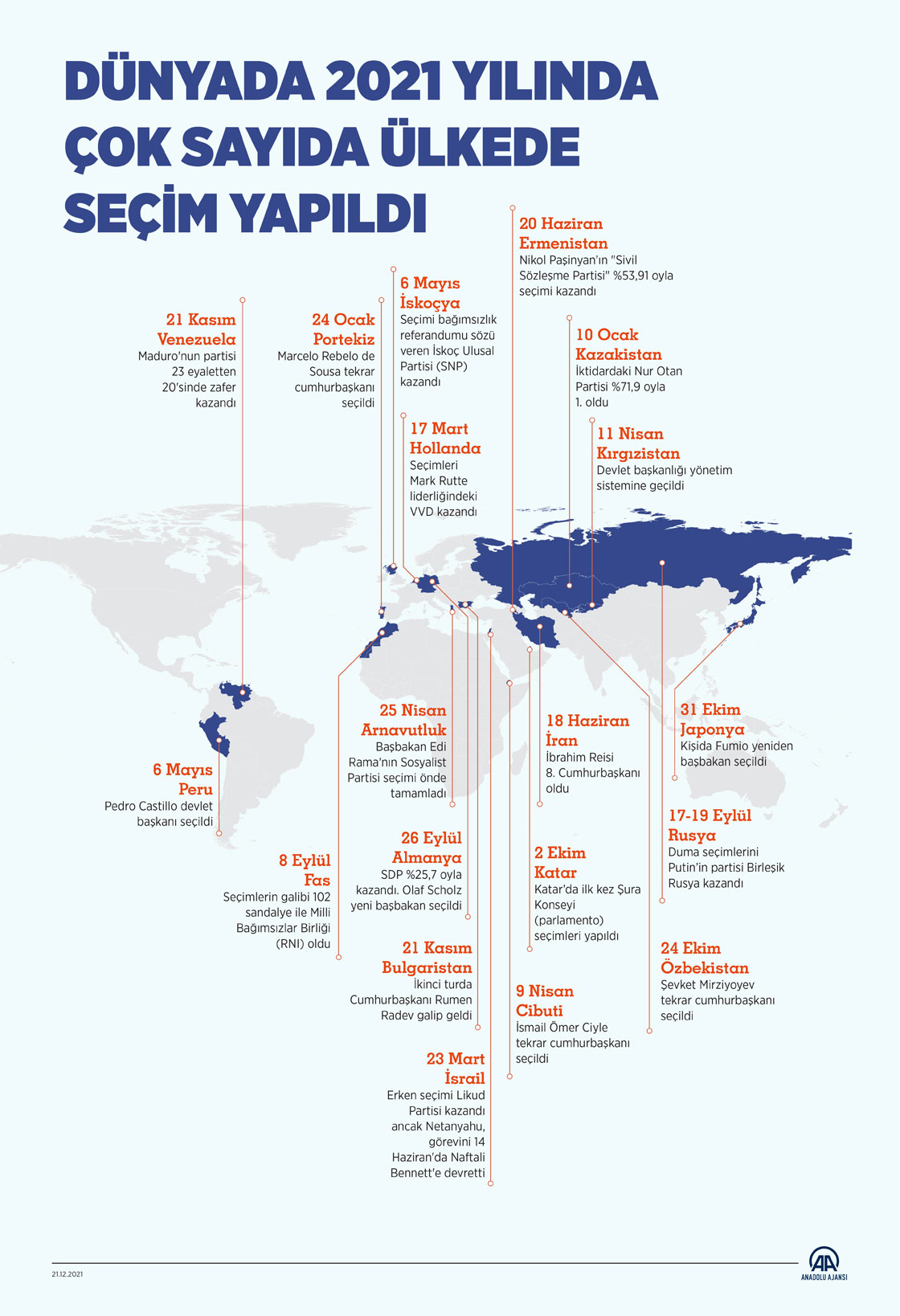 Dünyada 2021 yılında çok sayıda ülkede seçim yapıldı