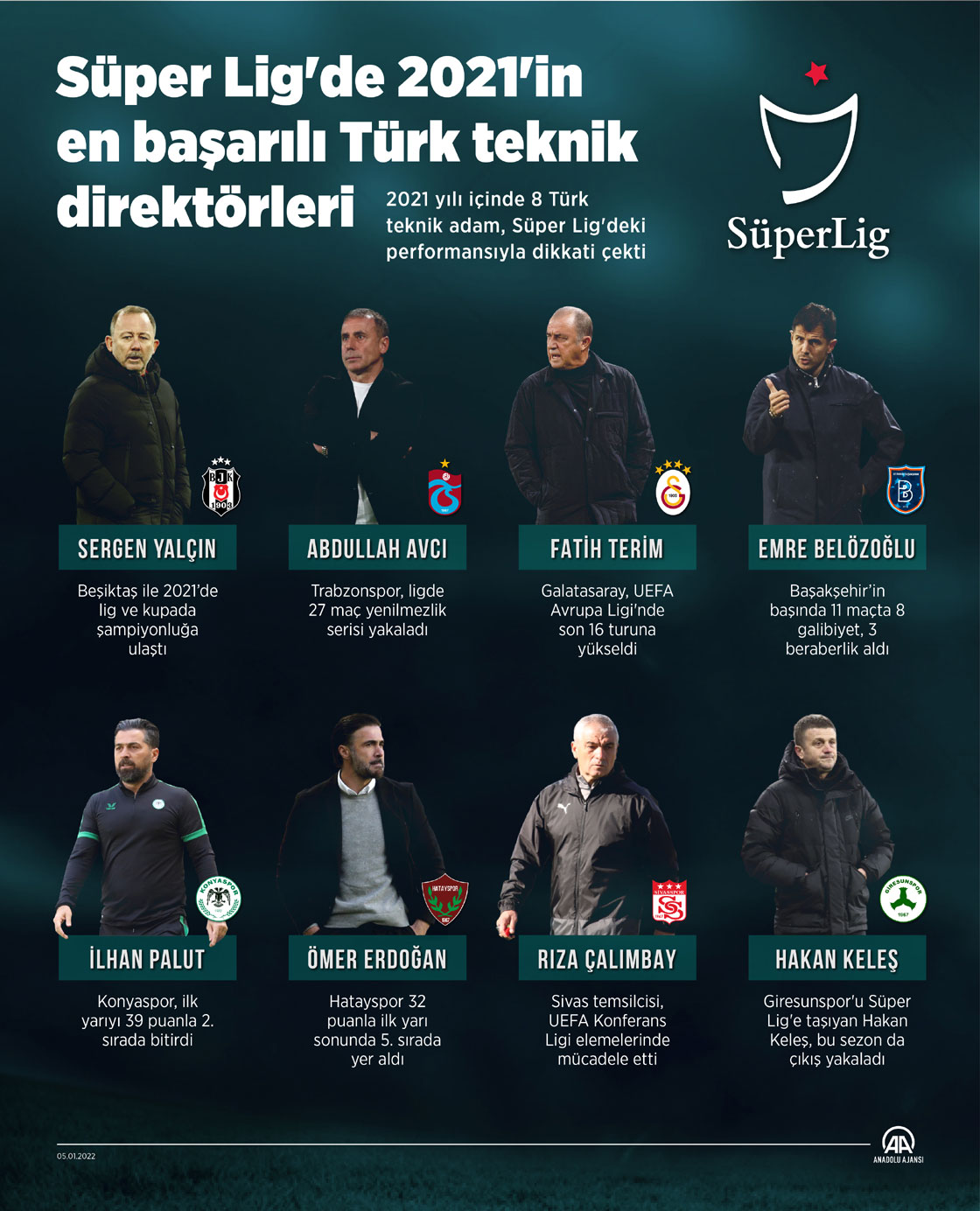 2021 yılı içinde 8 Türk teknik adam, Süper Lig'deki performansıyla dikkati çekti. (Muhammed Ali Yiğit/AA)