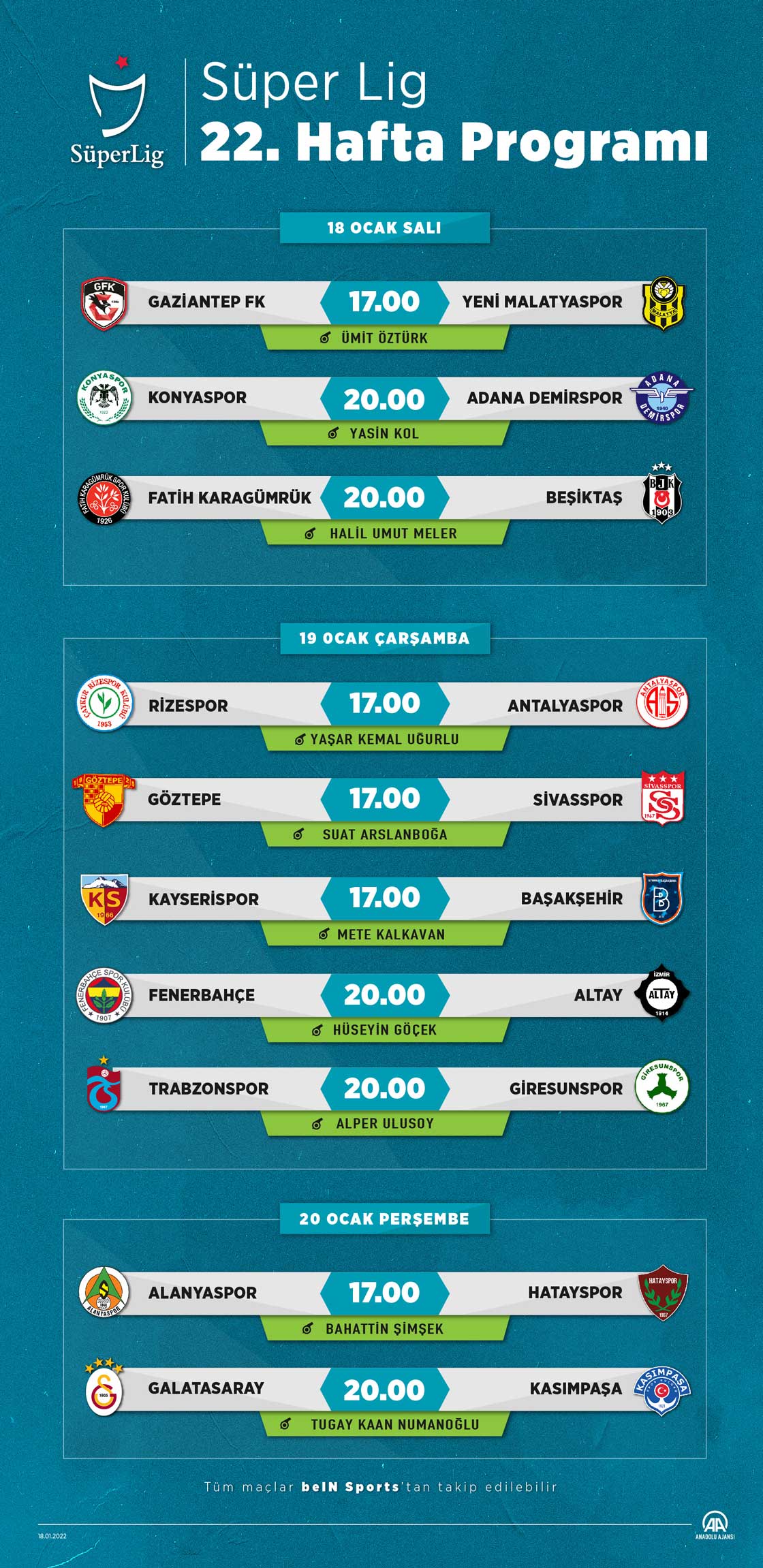 Süper Lig'de 22. hafta mücadelesi üç maçla başlayacak. (Grafik: Kemal Delikmen/AA)