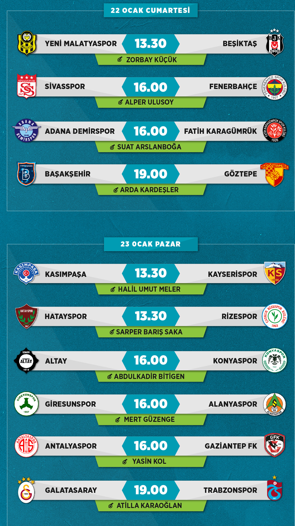 Süper Lig'de 23. hafta mücadelesi 22 Ocak Cumartesi günü oynanacak dört maçla başlayacak. (Grafik: Kemal Delikmen / AA)