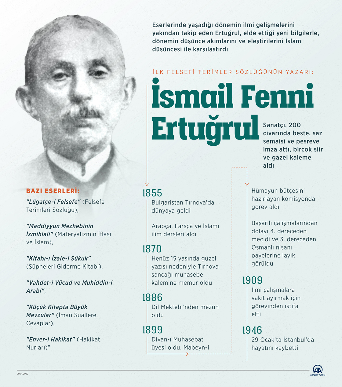 Eserlerinde yaşadığı dönemin ilmi gelişmelerini yakından takip eden Ertuğrul, elde ettiği yeni bilgilerle, dönemin düşünce akımlarını ve eleştirilerini İslam düşüncesi ile karşılaştırdı. (Grafik: Yasin Demirci / AA)