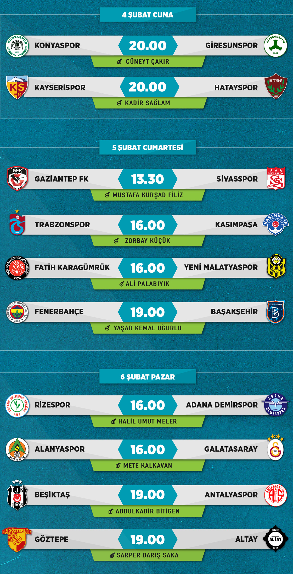Süper Lig'de 24. hafta mücadelesi 4 Şubat Cuma günü oynanacak iki maçla başlayacak. (Grafik: Kemal Delikmen / AA)