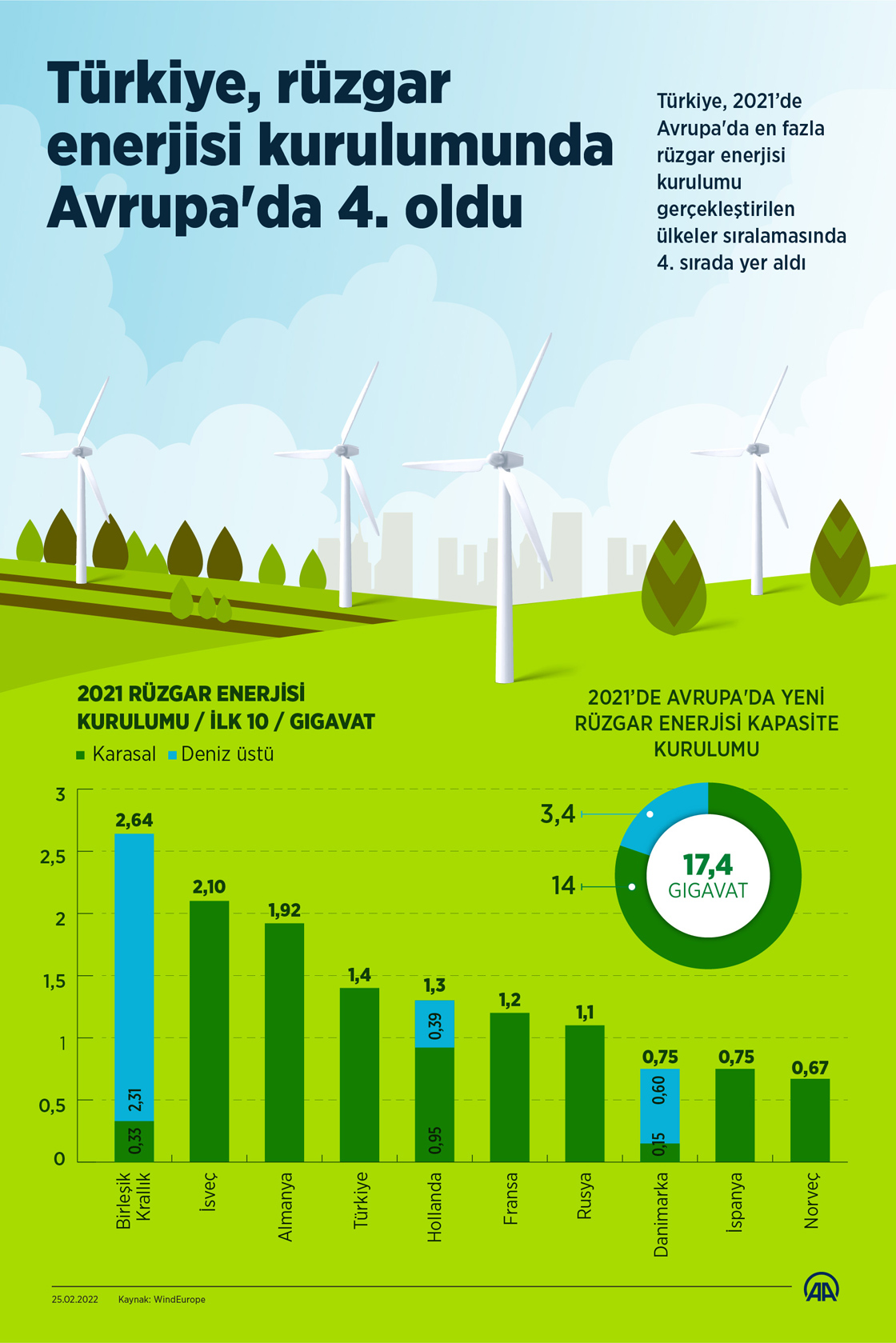 Türkiye, rüzgar enerjisi kurulumunda Avrupa'da 4. oldu